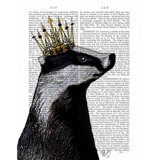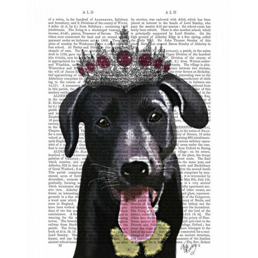 Black Labrador With Tiara White Modern Wood Framed Art Print by Fab Funky