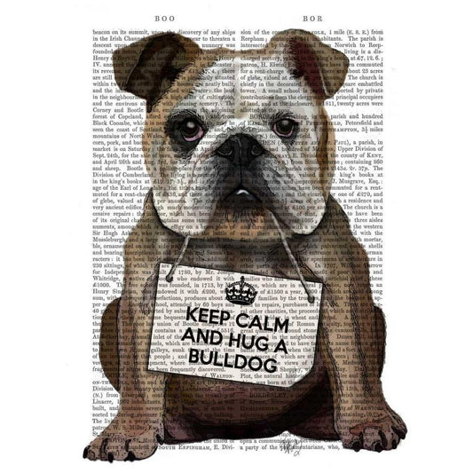 Hug a Bulldog White Modern Wood Framed Art Print by Fab Funky