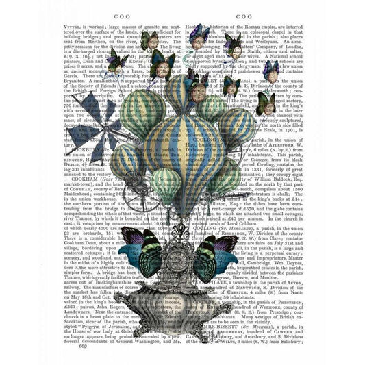 Hot Air Balloon and Birds White Modern Wood Framed Art Print by Fab Funky