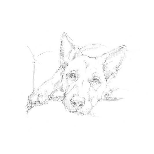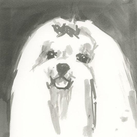 Sitting Dog I White Modern Wood Framed Art Print by Wang, Melissa