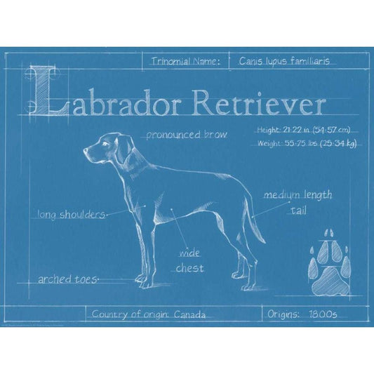 Blueprint Labrador Retriever White Modern Wood Framed Art Print by Harper, Ethan