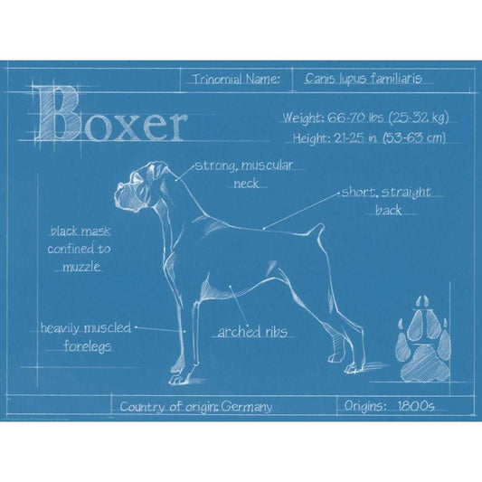 Blueprint Boxer White Modern Wood Framed Art Print by Harper, Ethan