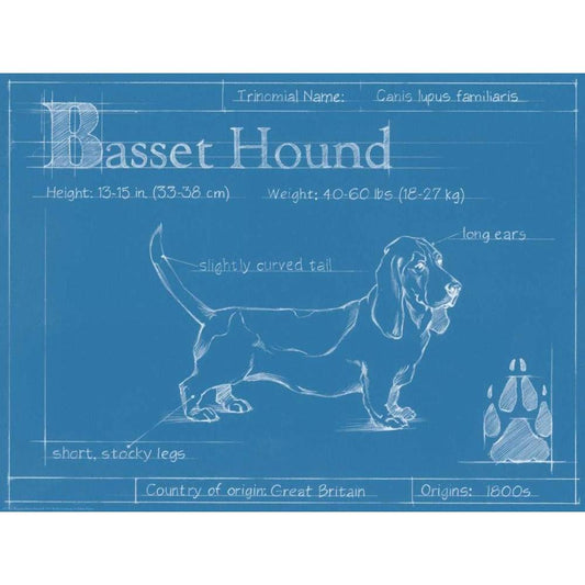 Blueprint Basset Hound White Modern Wood Framed Art Print by Harper, Ethan