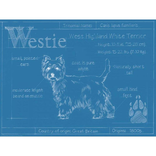 Blueprint Westie White Modern Wood Framed Art Print by Harper, Ethan