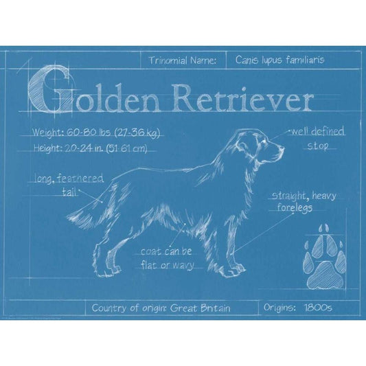 Blueprint Golden Retriever White Modern Wood Framed Art Print by Harper, Ethan