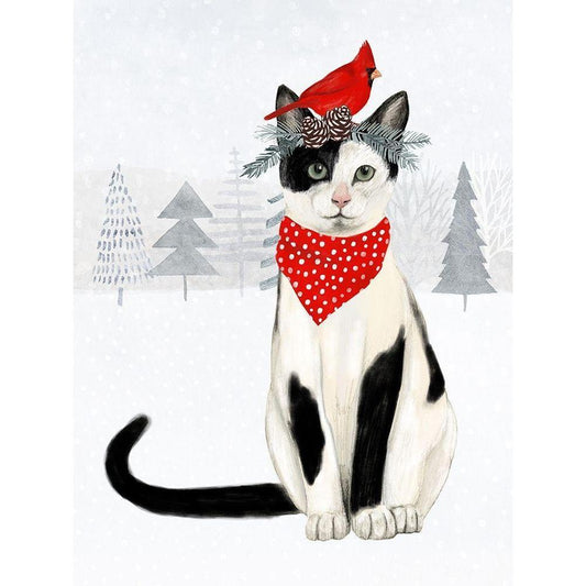 Christmas Cats and Dogs V White Modern Wood Framed Art Print by Borges, Victoria