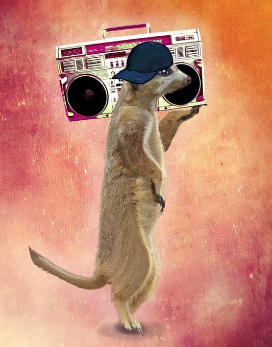 Meerkat and Boom Box White Modern Wood Framed Art Print with Double Matting by Fab Funky