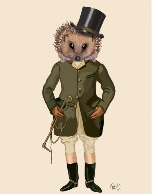 Hedgehog Rider Full White Modern Wood Framed Art Print with Double Matting by Fab Funky