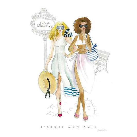 Paris Girlfriends III v2 White Modern Wood Framed Art Print by Charro, Mercedes Lopez