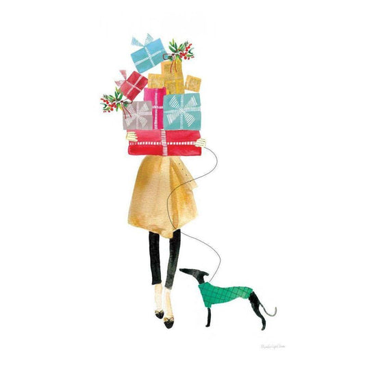 Holiday Dachshund White Modern Wood Framed Art Print by Charro, Mercedes Lopez