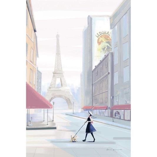 Paris Morning Walk White Modern Wood Framed Art Print by Escalante, Omar