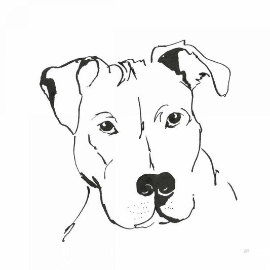 Line Dog Pitbull II White Modern Wood Framed Art Print by Paschke, Chris