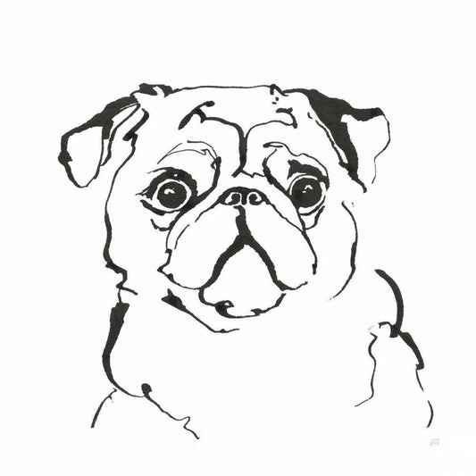 Line Dog Pug II White Modern Wood Framed Art Print by Paschke, Chris