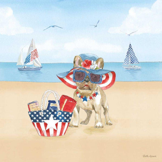 Summer Paws Patriotic IV White Modern Wood Framed Art Print by Grove, Beth