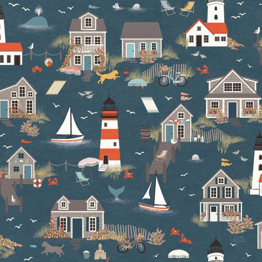 Seaside Village Pattern I White Modern Wood Framed Art Print by Marshall, Laura