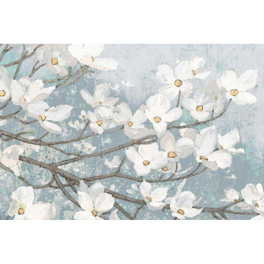 Dogwood Blossoms II Blue Gray Crop White Modern Wood Framed Art Print by Wiens, James
