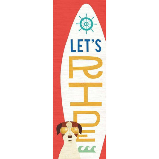 Beach Bums Terrier Surf Board White Modern Wood Framed Art Print by Mullan, Michael