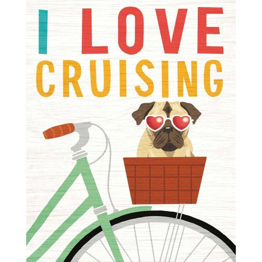 Beach Bums Pug Bicycle I Love White Modern Wood Framed Art Print by Mullan, Michael