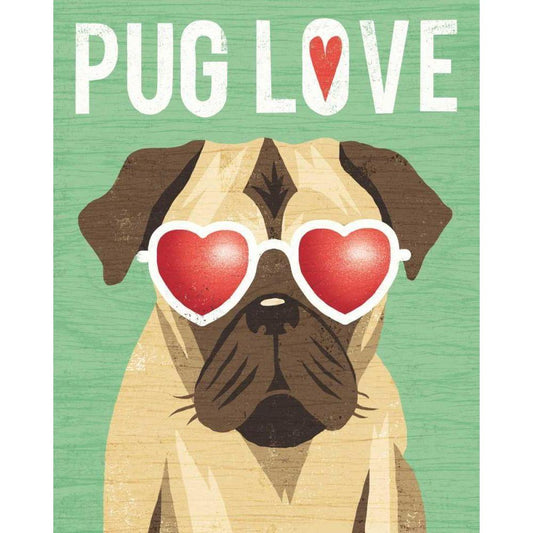 Beach Bums Pug I Love White Modern Wood Framed Art Print by Mullan, Michael