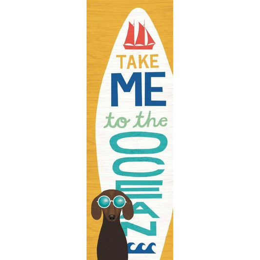 Beach Bums Dachshund Surf Board White Modern Wood Framed Art Print by Mullan, Michael