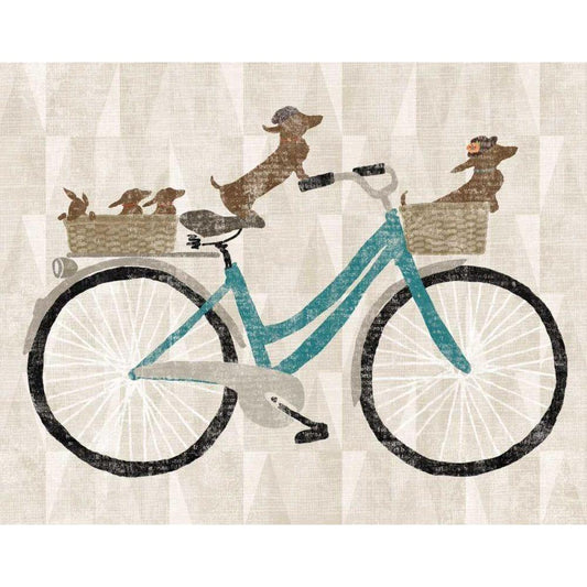 Doxie Ride v.I White Modern Wood Framed Art Print by Schlabach, Sue