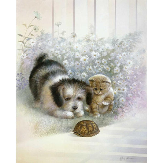 Friends Fur-Ever White Modern Wood Framed Art Print by SD Graphics Studio