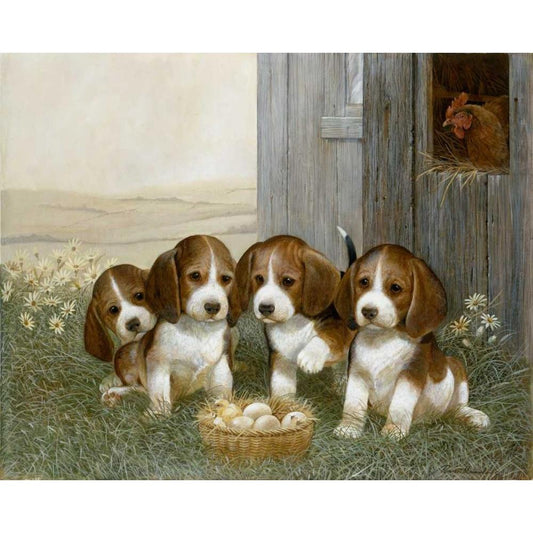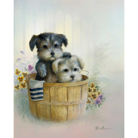 Belles Pups White Modern Wood Framed Art Print by Manning, Ruane