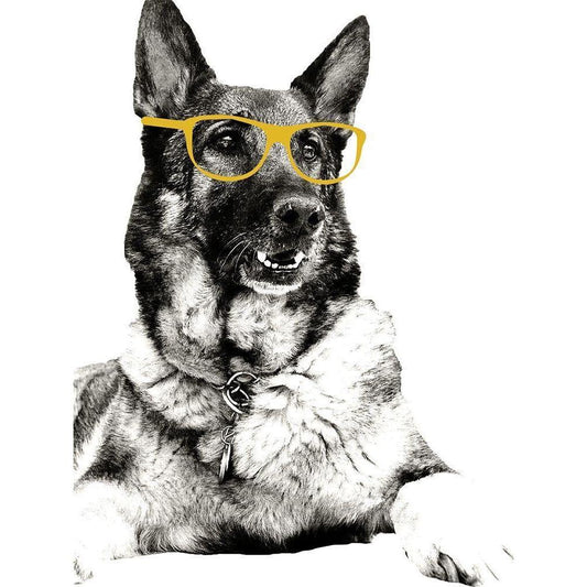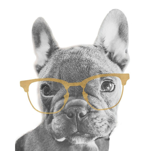 Frenchie Gold Glasses White Modern Wood Framed Art Print by SD Graphics Studio