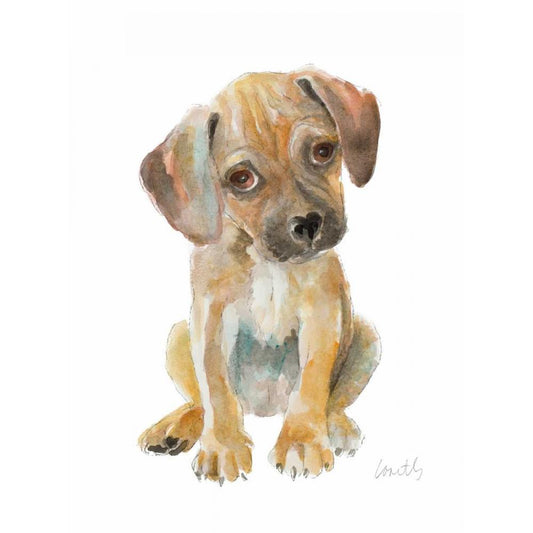 Water Color Girl With Puppy II White Modern Wood Framed Art Print by Loreth, Lanie