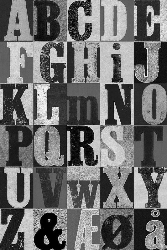 Alphabet Grey Black Ornate Wood Framed Art Print with Double Matting by Folcarelli, Pernille