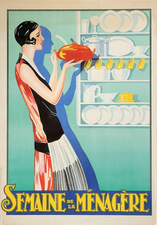 Managerie Housewife Black Ornate Wood Framed Art Print with Double Matting by Vintage Apple Collection