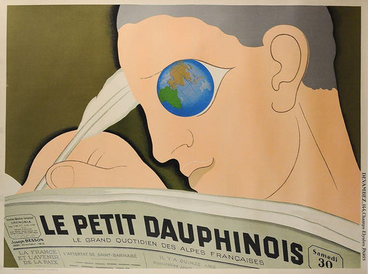 artdeco_french_newspaper Black Ornate Wood Framed Art Print with Double Matting by Vintage Apple Collection