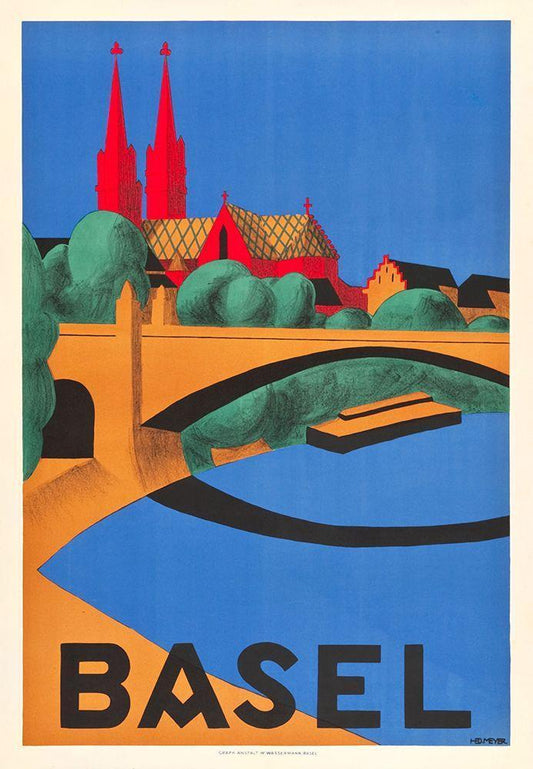 Basel Black Ornate Wood Framed Art Print with Double Matting by Vintage Apple Collection
