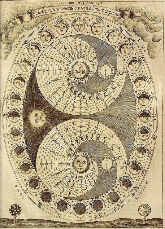 Moonphases Black Ornate Wood Framed Art Print with Double Matting by Vintage Apple Collection