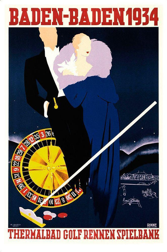 Badenbaden Black Ornate Wood Framed Art Print with Double Matting by Vintage Apple Collection