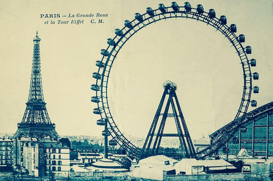Grande Roue Carte Postale 1 Black Ornate Wood Framed Art Print with Double Matting by Vintage Apple Collection
