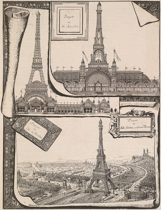 Plans Paris Exposition Black Ornate Wood Framed Art Print with Double Matting by Vintage Apple Collection