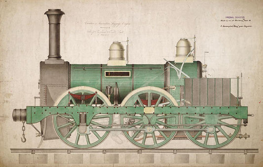 Vintage Train Black Ornate Wood Framed Art Print with Double Matting by Vintage Apple Collection