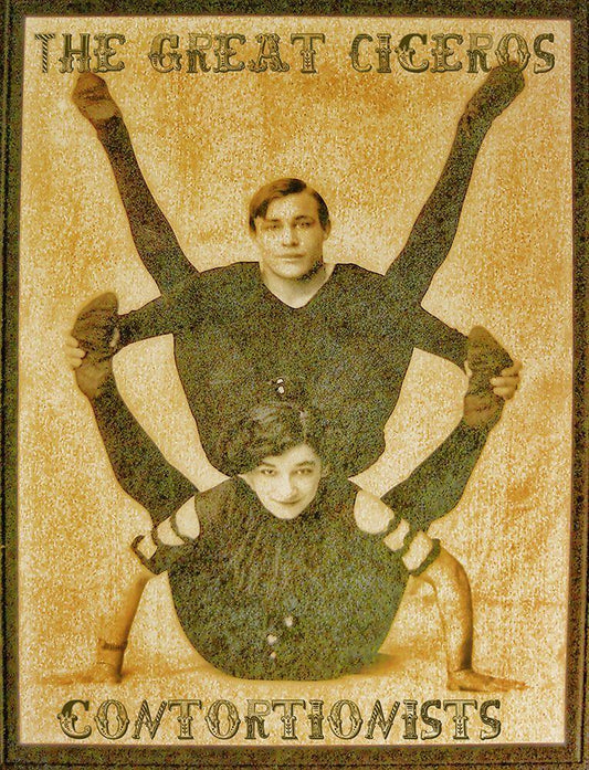 Sideshow Contortionists Black Ornate Wood Framed Art Print with Double Matting by Vintage Apple Collection