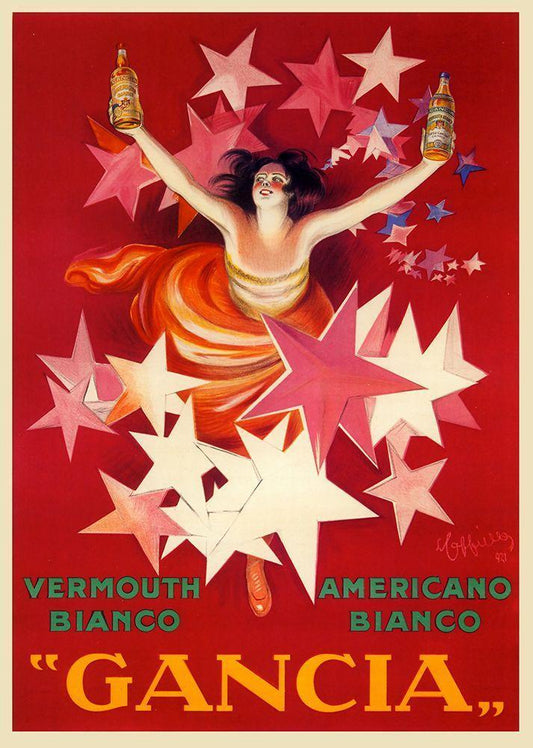 cappiello_gancia Black Ornate Wood Framed Art Print with Double Matting by Vintage Apple Collection