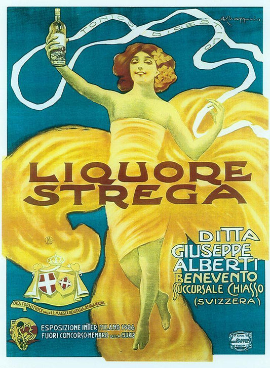 cappiello_strega Black Ornate Wood Framed Art Print with Double Matting by Vintage Apple Collection