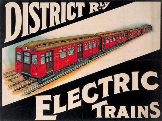 Electric Trains Black Ornate Wood Framed Art Print with Double Matting by Vintage Apple Collection