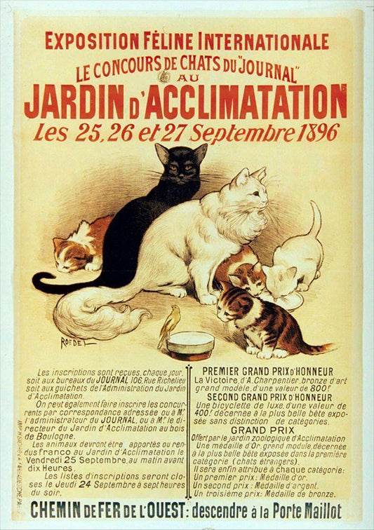 Exposition Feline Black Ornate Wood Framed Art Print with Double Matting by Vintage Apple Collection
