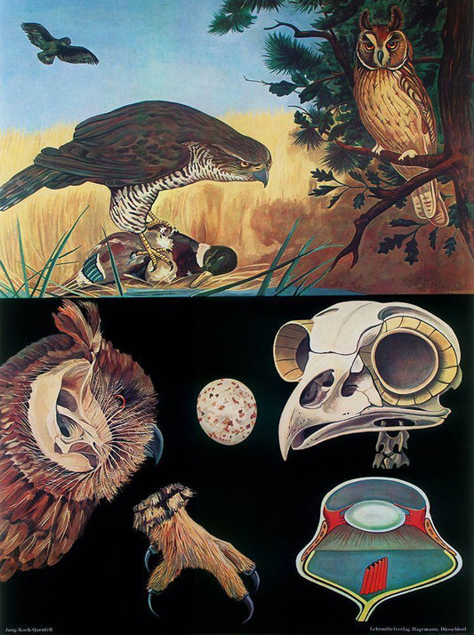 Predatory Birds Black Ornate Wood Framed Art Print with Double Matting by Vintage Apple Collection