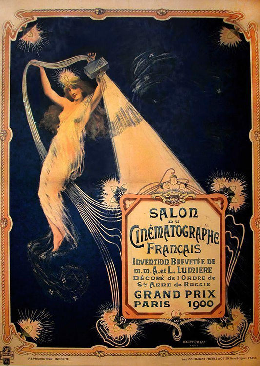 Salon du Cinématographe Black Ornate Wood Framed Art Print with Double Matting by Vintage Apple Collection