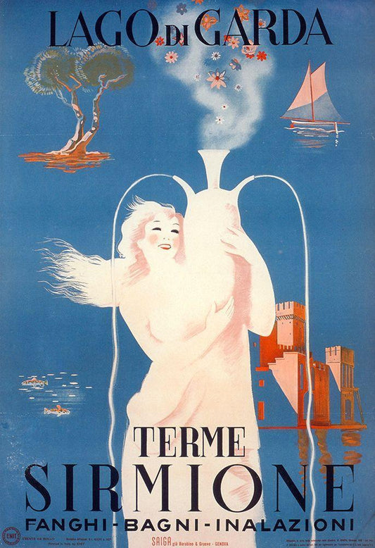 Terme Sirmione Black Ornate Wood Framed Art Print with Double Matting by Vintage Apple Collection