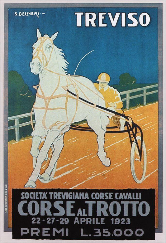 Treviso Horse Racing Black Ornate Wood Framed Art Print with Double Matting by Vintage Apple Collection