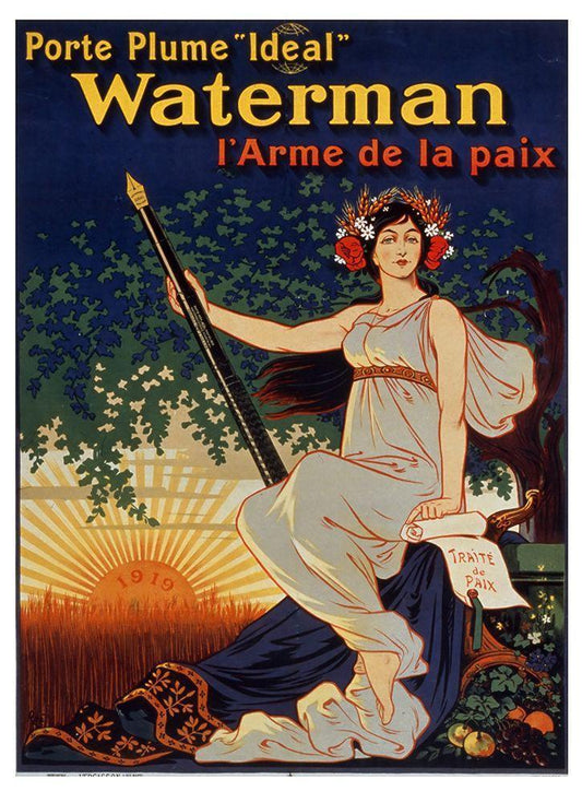 Waterman Pen Black Ornate Wood Framed Art Print with Double Matting by Vintage Apple Collection