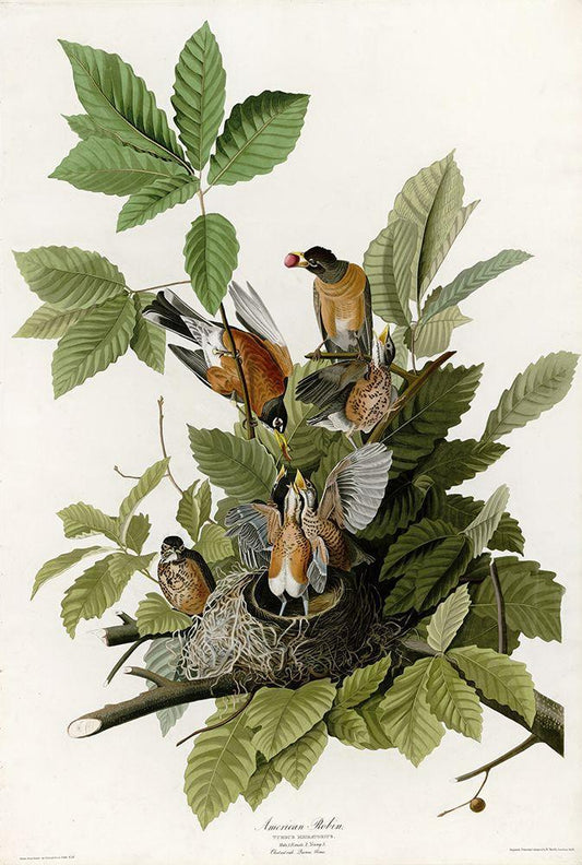 American Robin Black Ornate Wood Framed Art Print with Double Matting by Vintage Apple Collection