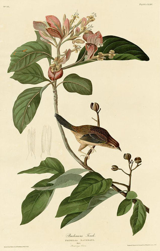 Bachmans Finch Black Ornate Wood Framed Art Print with Double Matting by Vintage Apple Collection
